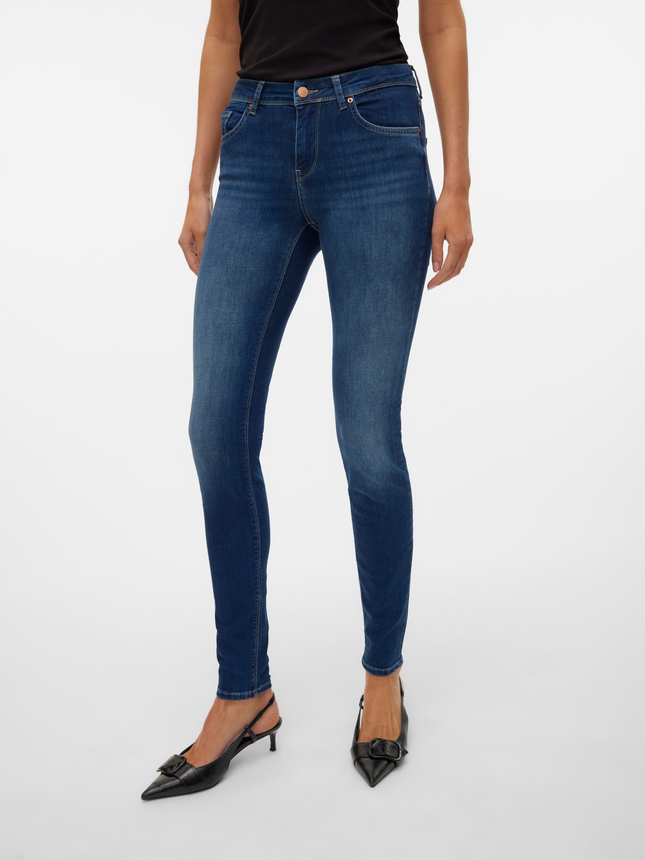 VERO MODA VMSEVEN Slim Fit Jeans Damen - Mid Rise Röhrenjeans Mit 5-Pockets