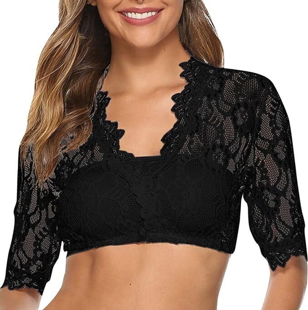Dirndl Bluse Damen Mit Spitze - Herzausschnitt Für Oktoberfest