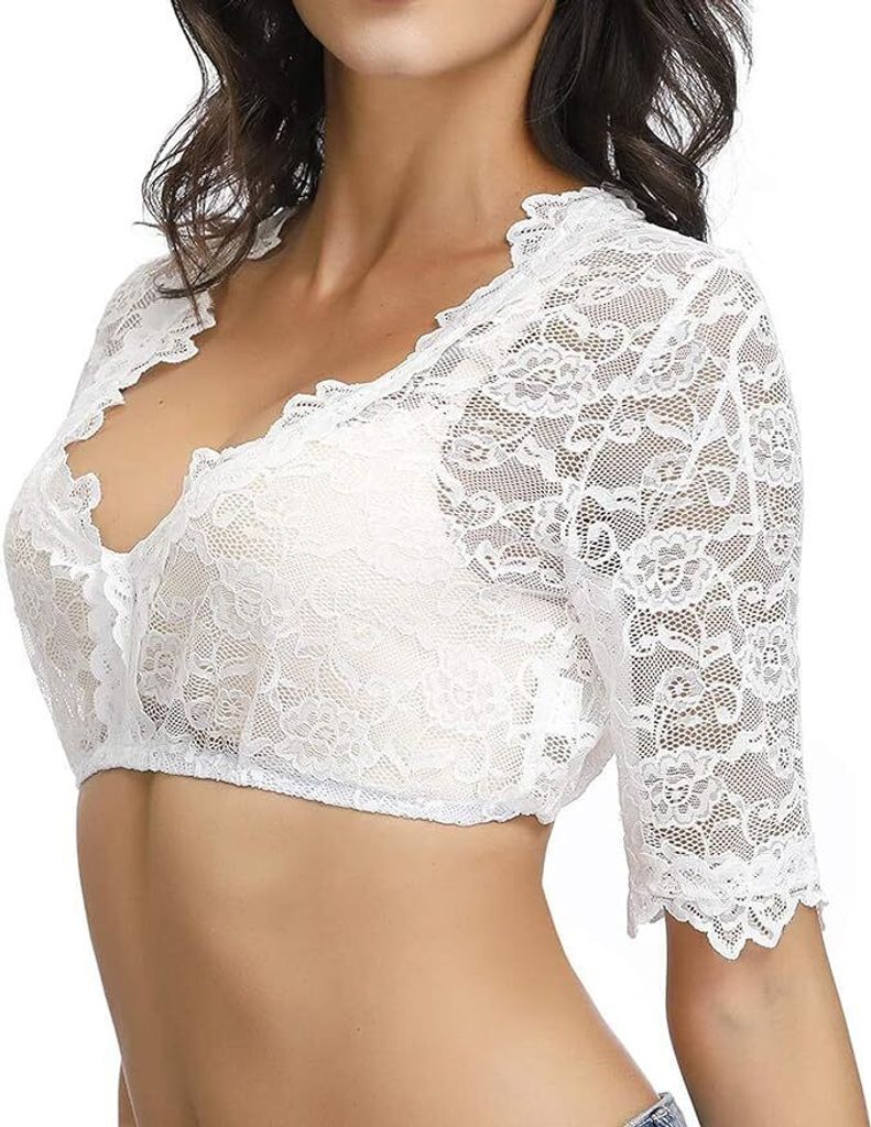 Perfekt fürs Oktoberfest und andere Feste! Diese Dirndlbluse in weiß sieht einfach traumhaft aus mit dem herzförmigen Ausschnitt und der zarten Spitze. Das Material ist hochwertiges Polyester - super weich, angenehm auf der Haut und trotzdem robust genug für lange Festabende. Die kurzen Flatterärmel geben dir genug Bewegungsfreiheit zum Tanzen und Prost sagen. Der Stehkragen und die drei traditionellen Knöpfe vervollständigen den authentischen bayerischen Look. Die Bluse ist dehnbar und passt sich deinem Körper super an - also kein unbequemes Einschnüren. Ob zu einem klassischen Dirndl oder modernen Rock - diese Bluse macht immer eine gute Figur. Perfekt für Wiesn-Besuche, Volksfeste oder Trachtenhochzeiten. Einfach anziehen und du fühlst dich wie eine echte Bayerin - nur viel stylischer! Ein Must-Have für jede Fest-Saison!