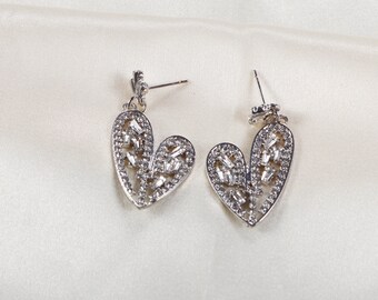 Silber Ohrringe Damen Mit Strass & Herz-Anhänger - Elegante Stecker Für Jeden Anlass