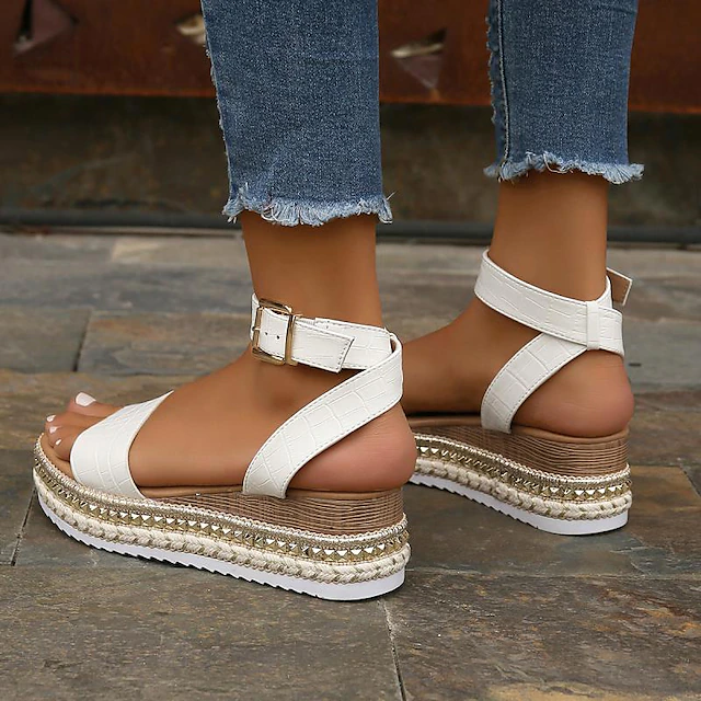 Endlich Sandalen, die nicht nur gut aussehen, sondern auch deine Füße verwöhnen! Diese HOPASRISEE Plateausandalen im Vintage-Look haben ein orthopädisches Fußbett mit Massagefunktion - das tut richtig gut! Der etwa 7 cm hohe Keilabsatz gibt dir Größe, ohne dass du darunter leidest. Die rutschfeste Gummisohle gibt sicheren Halt auf jedem Untergrund, und das atmungsaktive Material sorgt für ein angenehmes Fußklima. Superleicht und bequem - perfekt für den ganzen Tag! Das elegante Fischmaul-Design schützt deine Zehen, ohne zu drücken. Erhältlich in Schwarz und Weiß, inklusive süßer Fußkettchen für den extra Style. Aus Polyurethan-Sohle und PU-Innenmaterial - langlebig und pflegeleicht. Wichtig: Größen können um 1-2 cm abweichen, und die Farben können auf dem Bildschirm etwas anders aussehen. Egal ob für die Stadt, den Strand oder besondere Anlässe - mit diesen Sandalen machst du immer eine gute Figur und tust deinen Füßen was Gutes! Einfach reinschlüpfen und wohlfühlen!