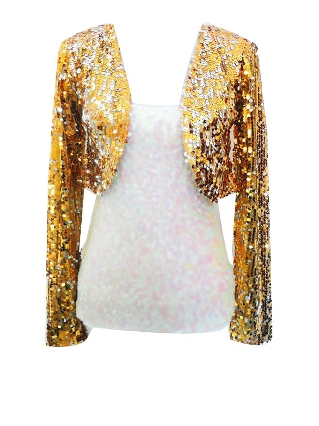 Freebily Damen Pailletten Bolero - Glitzer Fransenjacke Für Partys & Events