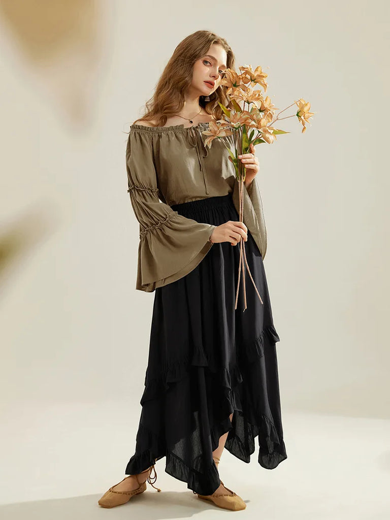 Damen Piraten-Kostüm - Renaissance Kleid Mit Glockenärmeln, Schulterfrei