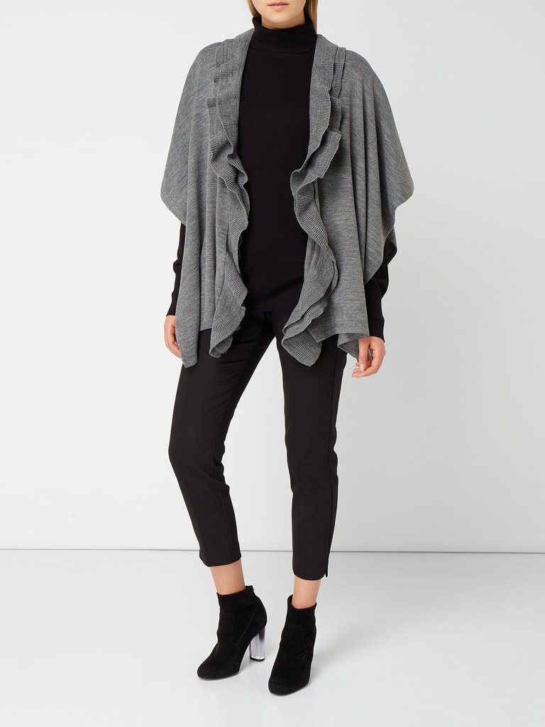 Der s.Oliver Poncho ist dein neuer Liebling für kühle Tage! Im lässigen O-Shape Design sitzt er locker und bequem über jeder Kleidung. Aus weichem Wollmix gestrickt, wärmt er dich angenehm ohne schwer zu sein. Ärmellos und ohne Verschluss - einfach überwerfen und fertig ist der stylische Look! Perfekt für den Alltag, ob zum Büro, für den Stadtbummel oder gemütliche Abende zu Hause. Das zeitlose Design passt zu Jeans, Leggings oder Röcken und lässt sich super kombinieren. Elastisches Strickmaterial sorgt für Bewegungsfreiheit und optimalen Tragekomfort. Ein echtes Must-Have für die Übergangszeit und kühlere Tage - kuschelig weich und dabei total modisch! Mach es dir gemütlich mit diesem vielseitigen Poncho, der deine Outfits im Handumdrehen aufwertet. Einfach anziehen und wohlfühlen!