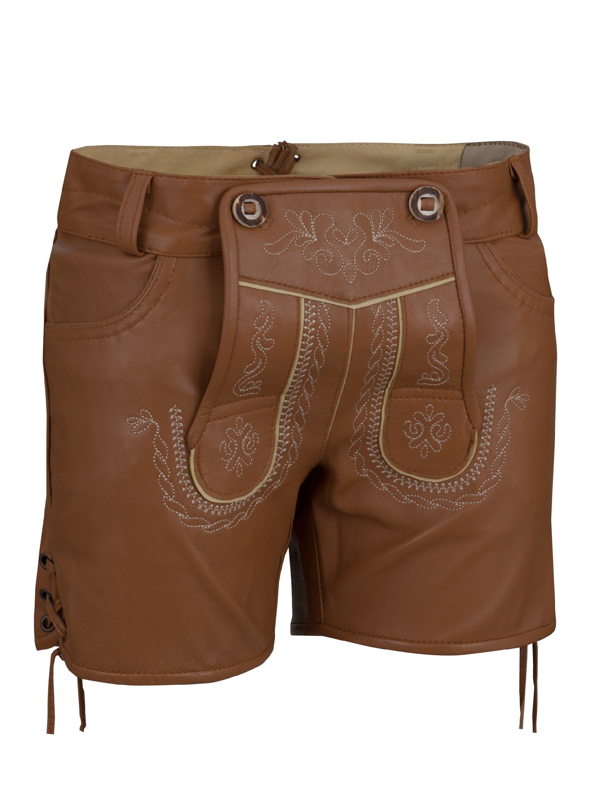 Nübler Lederhose Hotpants Damen - Premium Ziegenleder Mit Hosenträgern & Plattstickerei