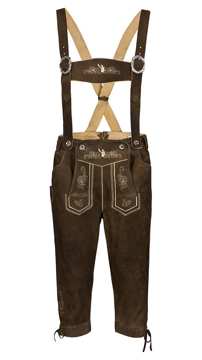 Mädels, diese Lederhose ist ja mal der absolute Hammer für jedes Volksfest! Aus weichem Ziegenleder in schwarz - da macht man auf dem Oktoberfest oder jedem anderen Fest eine mega Figur. \\n\\nDas Leder ist richtig geschmeidig und weich - nichts kratzt oder drückt. Und die Plattstickereien sehen so authentisch aus - richtige Handwerkskunst! \\n\\nDie Hosenträger sind verstellbar und abnehmbar - du kannst sie also tragen wie du willst. Mal mit, mal ohne - total flexibel! \\n\\nPraktisch sind auch die vielen Taschen: Zwei seitliche Einschubtaschen, eine Gesäßtasche und sogar eine Messertasche für dein Taschenmesser. Alles da was man braucht! \\n\\nWichtiger Tipp: Beim Kauf sollte die Hose etwas enger sitzen, denn sie weitet sich noch beim Tragen. Im Bund etwa 2-3cm, am Oberschenkel 3-5cm. Also lieber eine Nummer kleiner bestellen! \\n\\nDie Metallknöpfe geben dem ganzen noch diesen extra stylischen Look. Und die Brotzeitfalte ist nicht nur traditionell, sondern auch super praktisch. \\n\\nPflegen musst du die Hose natürlich speziell - nicht in die Waschmaschine, sondern nur von Hand reinigen. Aber das ist sie wert! \\n\\nWenn du also nach ner Trachtenhose suchst die traditionell aussieht aber trotzdem modern und frech ist - hier ist sie! Einfach bestellen und auf dem nächsten Fest alle Blicke auf dich ziehen!