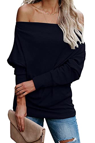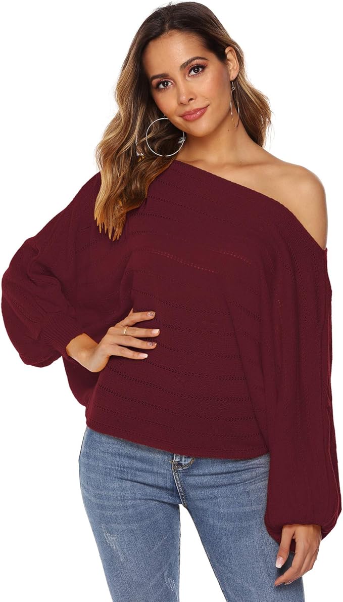 Damen Pullover Schulterfrei Waffelstrick | Loose Fit Langarm | Lässiger Casual Look | Herbst Mode