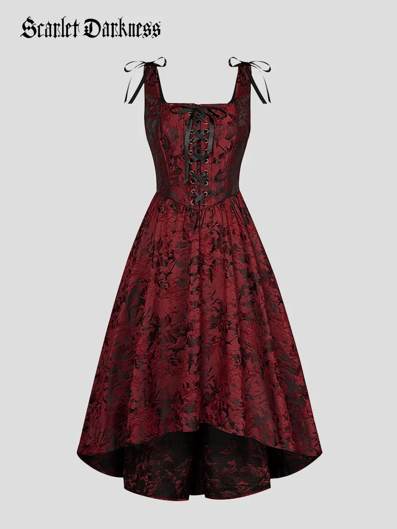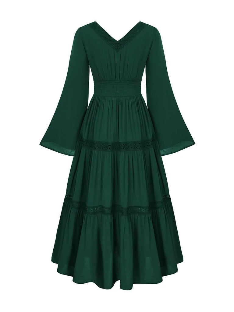 SCARLET DARKNESS Damen Renaissance Kleid - Glockenärmel Mit Wasserfallausschnitt