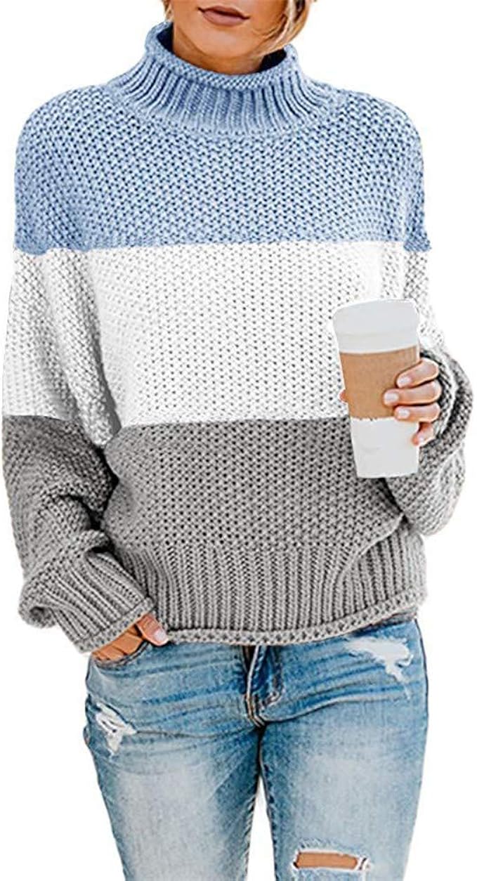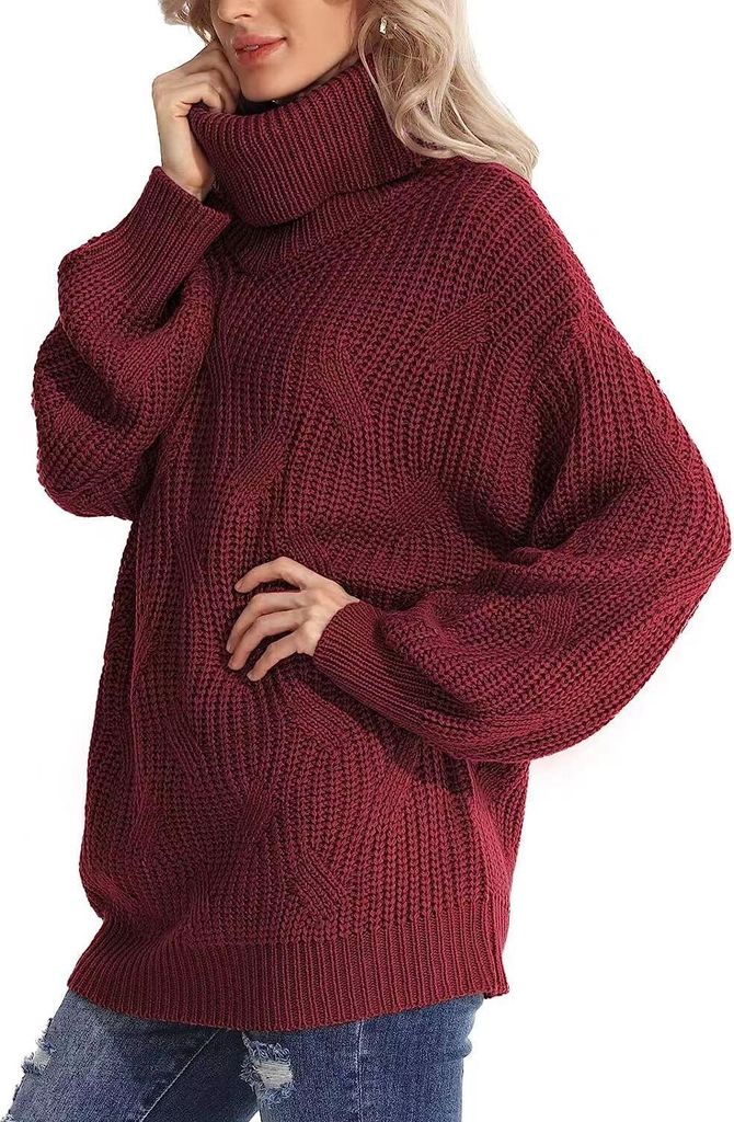 ORANDESIGNE Damen Rollkragenpullover - Oversize Batwing Strickpulli Langarm