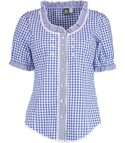 Echt bayrisches Flair fürs nächste Oktoberfest! Diese wunderschöne Trachtenbluse in rot-weißem Karo-Muster ist ein absoluter Hingucker. Aus hochwertigem, weichem Material gefertigt, das sich super angenehm auf der Haut trägt und atmungsaktiv ist. Der taillierte Schnitt betont deine Figur perfekt, während der klassische Rundhalsausschnitt für traditionelles Aussehen sorgt. Besondere Details wie die feine Spitze an Kragen und Ärmeln machen diese Bluse zu etwas Besonderem. Die Rüschen am Saum und das elastische Band geben dir maximale Bewegungsfreiheit. Perfekt zum Kombinieren mit Dirndl oder Trachtenrock - ob auf dem Volksfest, beim traditionellen Anlass oder einfach mal so für bayrisches Feeling. Ein echter Klassiker, der in keiner Trachtengarderobe fehlen sollte! Einfach anziehen und strahlen - damit wirst du garantiert zum Blickfang auf jedem Fest!