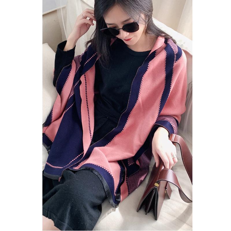 DJSKLDF Damen Schal Winter - Gestreift Plüsch Kaschmir Optik Warm