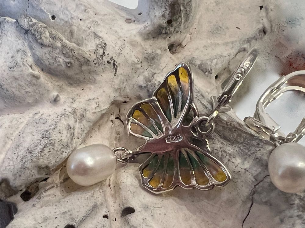 Damen Schmuckset 3-teilig - Schmetterling Perlen Halskette & Ohrringe