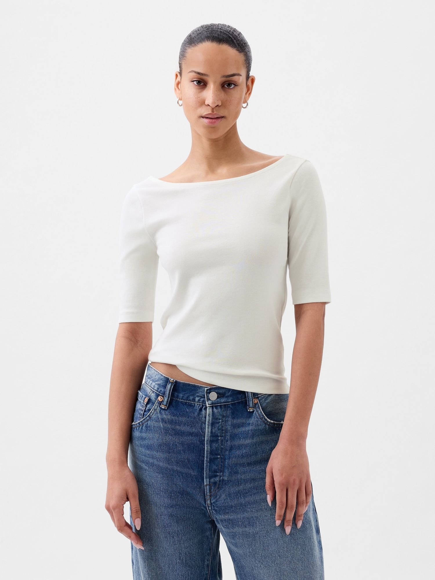 Damen Shirt Mit U-Boot-Ausschnitt Von Street One - Lässiges Basic Aus Baumwolle
