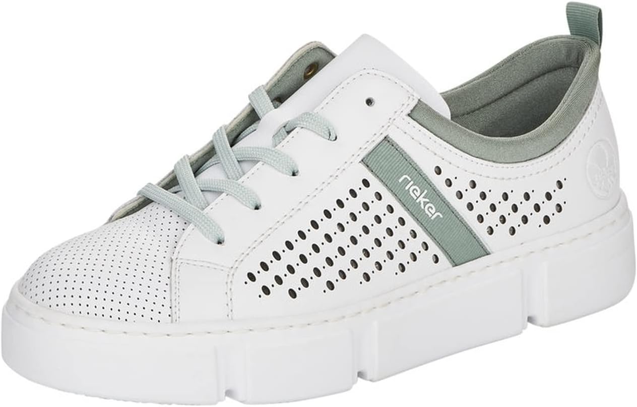 Wow, diese Rieker Sneaker sind ja der absolute Hammer! In coolem Glanzschwarz sehen sie nicht nur mega stylisch aus, sondern sind auch noch super bequem. Der sporty Look passt zu fast allem - ob Jeans, Hose oder Rock.\n\nDie breite Schnürung sorgt für den perfekten Sitz, und die leichte PU-Sohle federt jeden Schritt angenehm ab. Du läufst damit, als würdest du auf Wolken schweben! Die schockabsorbierende Wirkung ist besonders bei langen Spaziergängen oder Stadtbummel spürbar.\n\nDie Decksohle aus weichem Leder macht das Tragegefühl komplett. Mit 3,6 cm Absatzhöhe hast du eine leichte Erhöhung, ohne dass es unbequem wird. Perfekt für den ganzen Tag!\n\nRieker steht für Qualität und Komfort - das merkst du sofort. Diese Sneaker haben 100 Prozent Lieblingsschuh-Potential! Egal ob für die Arbeit, zum Einkaufen oder einfach nur für den Alltag - sie begleiten dich zuverlässig.\n\nDie normale Weite F passt den meisten Füßen, und das Kunstleder-Obermaterial ist pflegeleicht. Hol sie dir und erlebe, wie bequem Sneaker sein können! Du wirst sie nicht mehr ausziehen wollen.