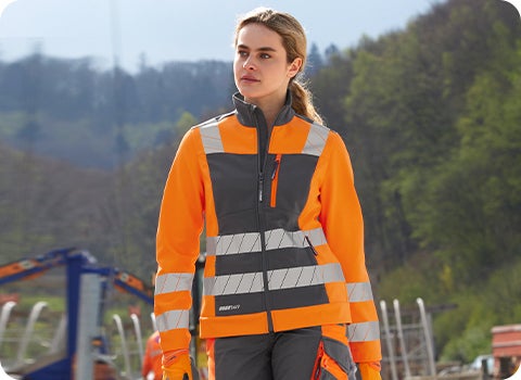 BP Damen Softshell-Jacke Warnorange - Arbeitsjacke Mit Reflexstreifen, Gr. M