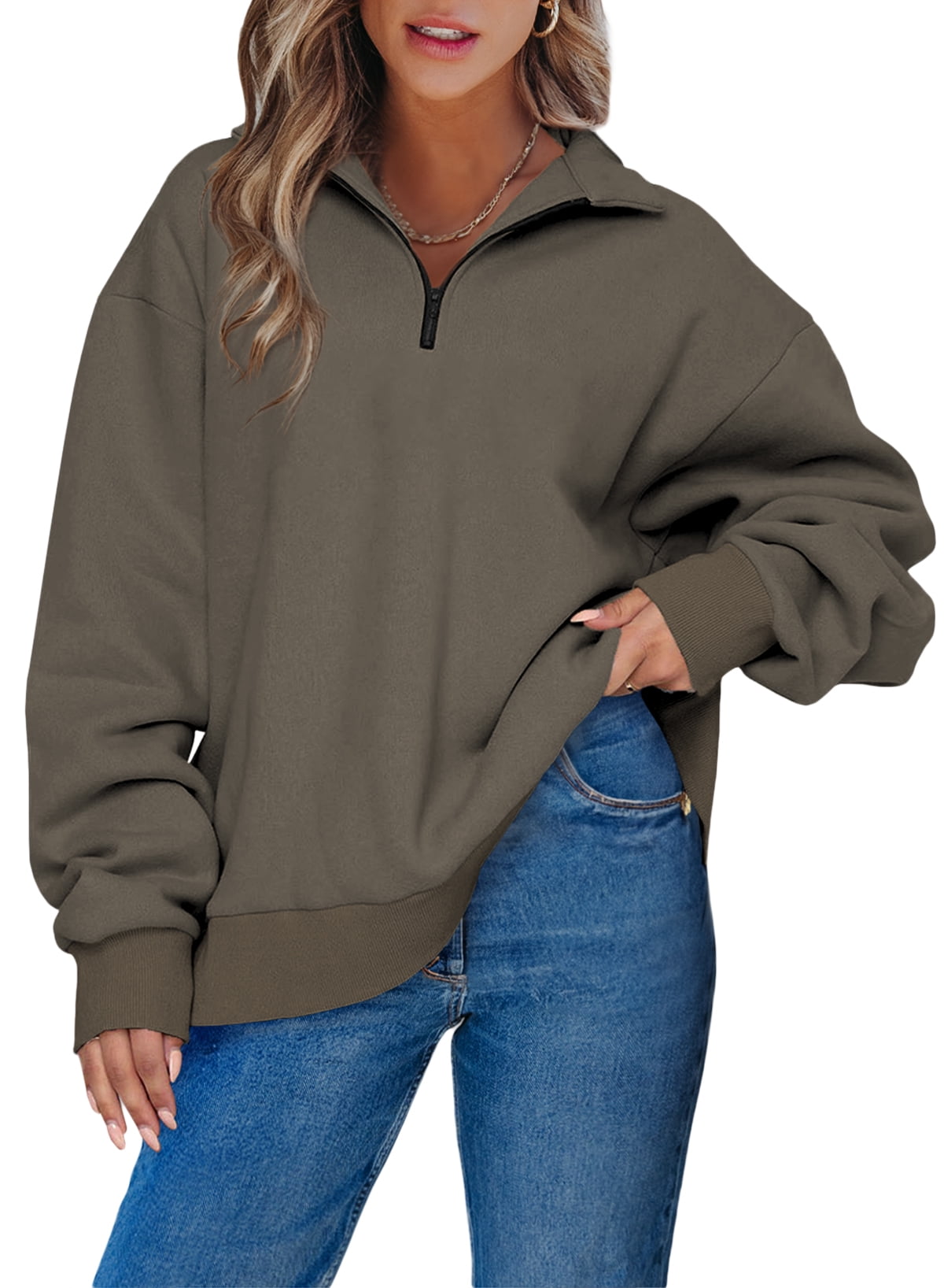 WZMYDBD Damen Sweatjacke Half Zip Crop - Fleece Oversized Sport Pullover