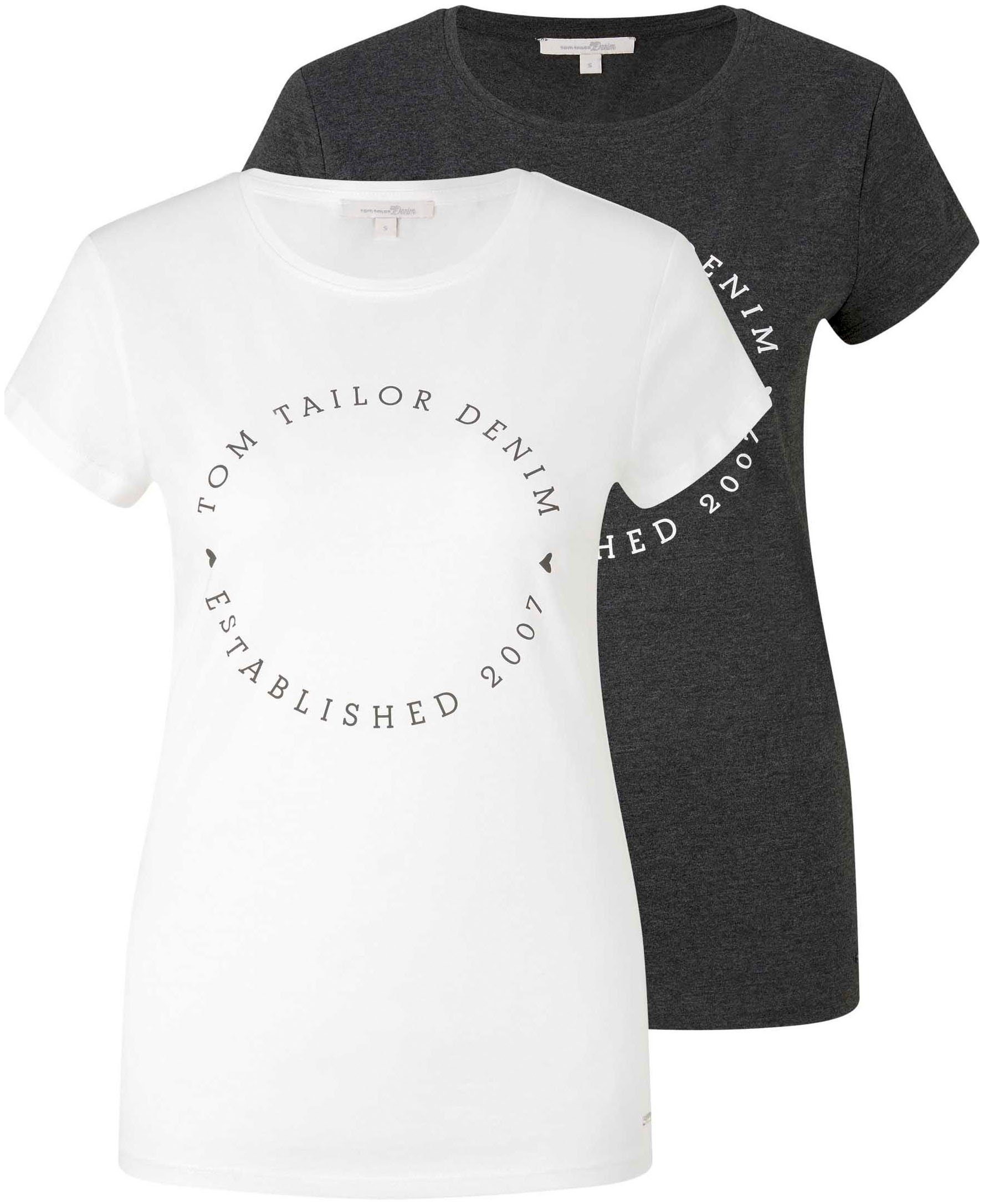 TOM TAILOR Denim Damen T-Shirt Mit Print - Slim Fit, Baumwolle, Lässig & Bequem