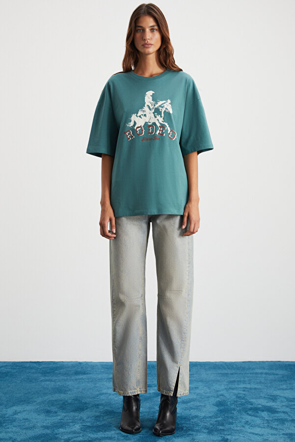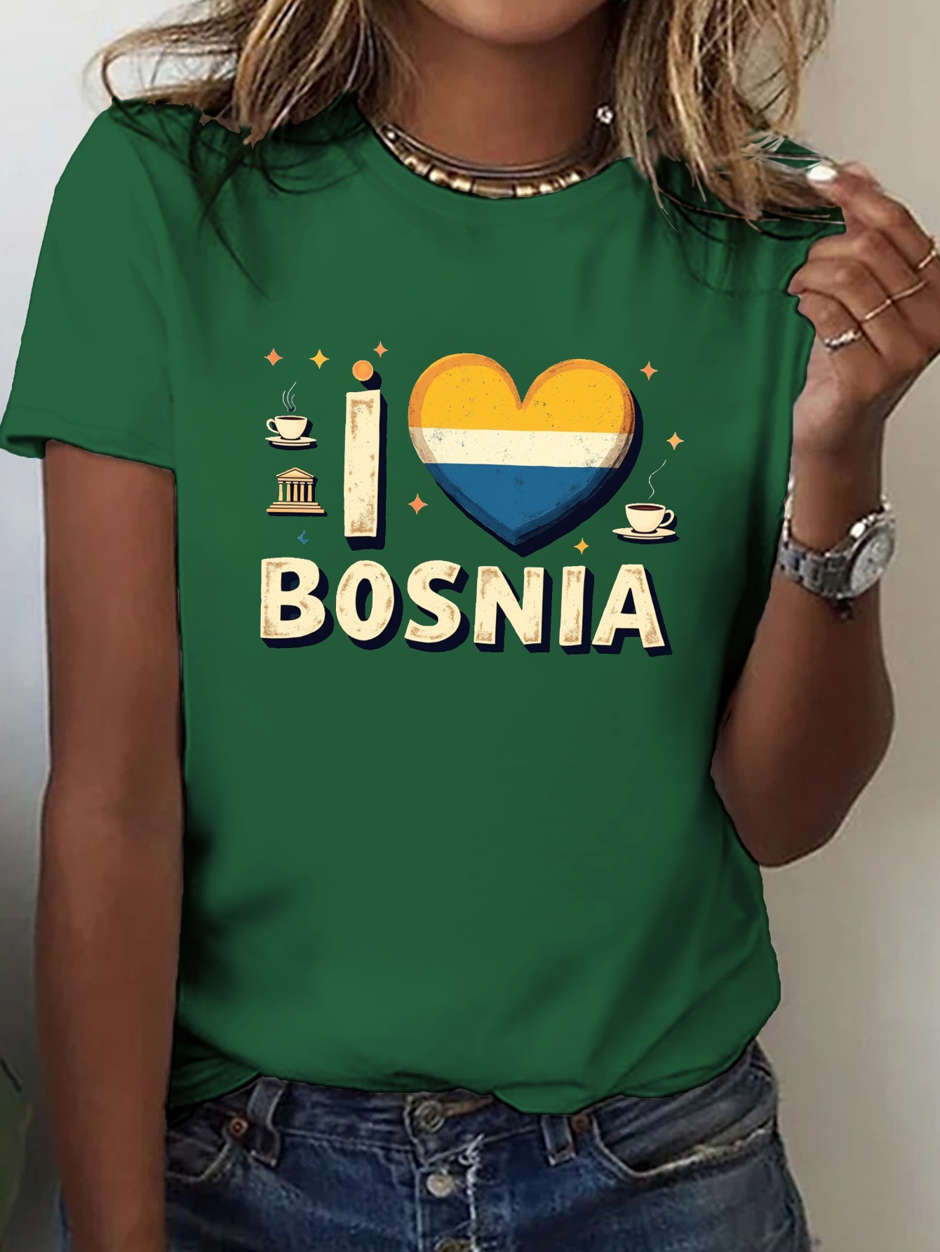 Damen T-Shirt Mit Retro Herz Strand Design - Baumwollmix Kurzarm Shirt In Grün