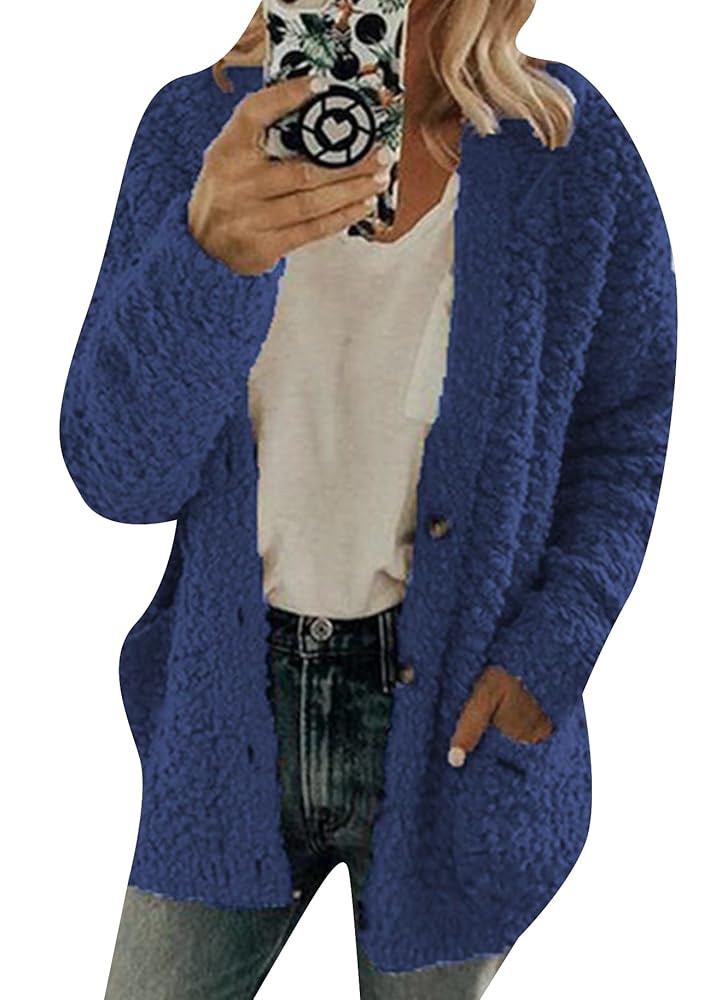 Damen Teddy Fleece Jacke - Warme Winter Cardigan Aus Wollmischung