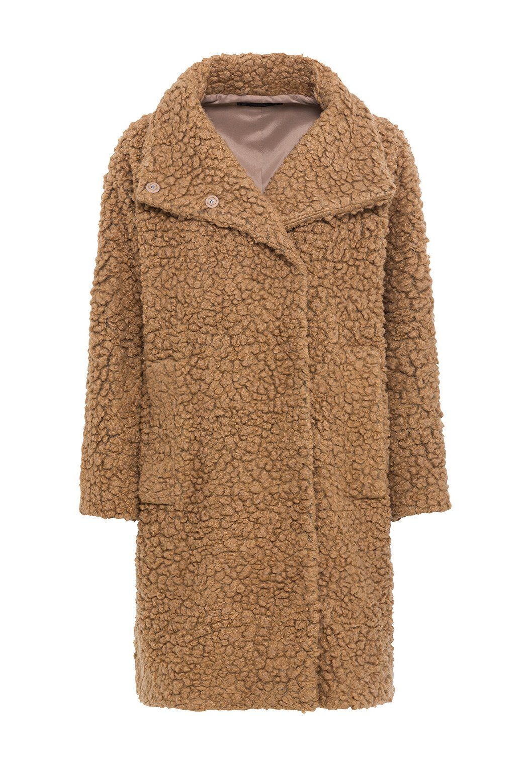 Zero Damen Teddymantel Mit Stehkragen - Figurbetontes Langarm-Mantel