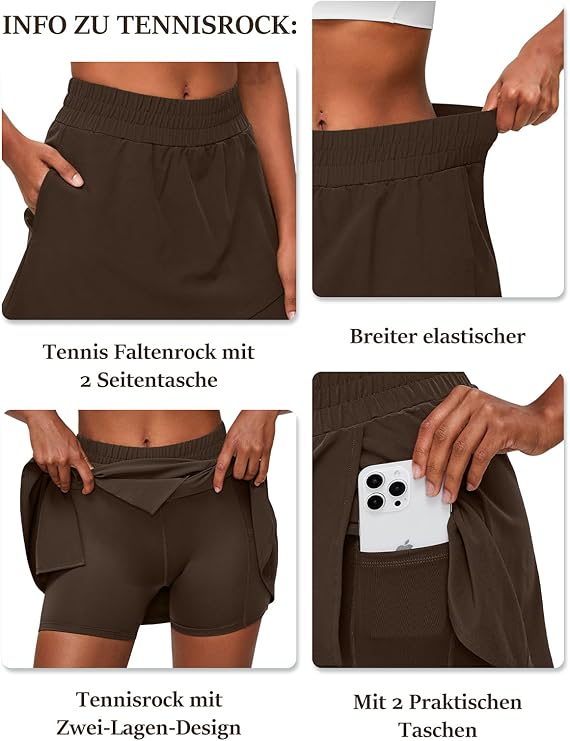 VUTRU Damen Tennisrock Mit Innenhose - Sportrock Hohe Taille Mit Taschen
