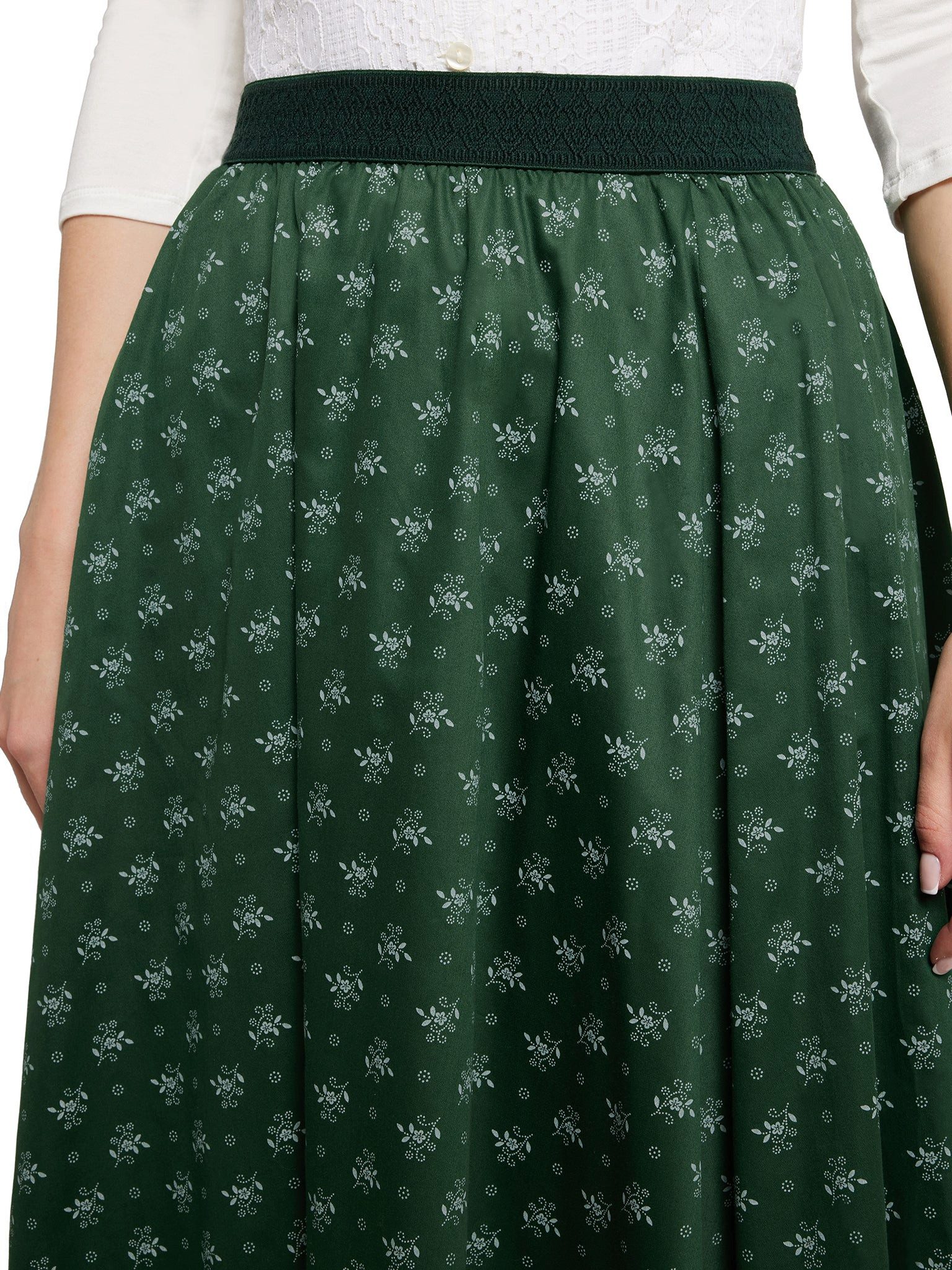 Dirndl-Feeling pur! Dieser traditionelle Trachtenrock von Berwin & Wolff bringt bayerisches Flair in deinen Kleiderschrank. In schönem Blau mit hübschem floralen Muster in weiß - einfach niedlich! Mit 58cm Länge sitzt er perfekt und der breite Bund sorgt für maximalen Komfort. Der praktische Reißverschluss an der Seite und der zusätzliche Knopf machen das Anziehen zum Kinderspiel. Aus weicher Baumwolle gefertigt - ideal für warme Sommertage. Perfekt fürs Oktoberfest, Maifeiern oder einfach für den Alltag. Kombinier ihn mit einem Trachtenmieder oder einer Bluse und du hast den perfekten Look! Bei 30°C in der Maschine waschbar - super pflegeleicht. Ob auf dem Volksfest oder in der Stadt - mit diesem Rock bist du immer stylisch unterwegs. Hol dir ein Stück Tradition mit modernem Charme!