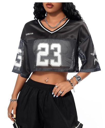 Navneet Oversize Shirt Damen Y2K - Bauchfreies Football Trikot Im Retro Style