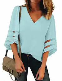 Wow, diese Bluse ist einfach stylisch! Mit den 3/4 Glockenärmeln und dem coolen Netzstoff-Design an den Ärmeln macht sie sofort was her. Der V-Ausschnitt ist dezent und schmeichelhaft, die lockere Passform super bequem. Perfekt für den Alltag, Freizeit oder auch mal für einen Abendausflug. Einfach mit zerrissenen Jeans kombinieren und du hast den perfekten lässigen Look. Erhältlich in verschiedenen Größen von S (36-38) bis XXL (52-54) - einfach die Größentabelle checken für die perfekte Passform. Das Chiffon-Material liegt angenehm auf der Haut und die einfarbigen Designs passen zu allem. Einfach ein tolles Basic-Teil für deinen Kleiderschrank, das sich vielseitig kombinieren lässt!