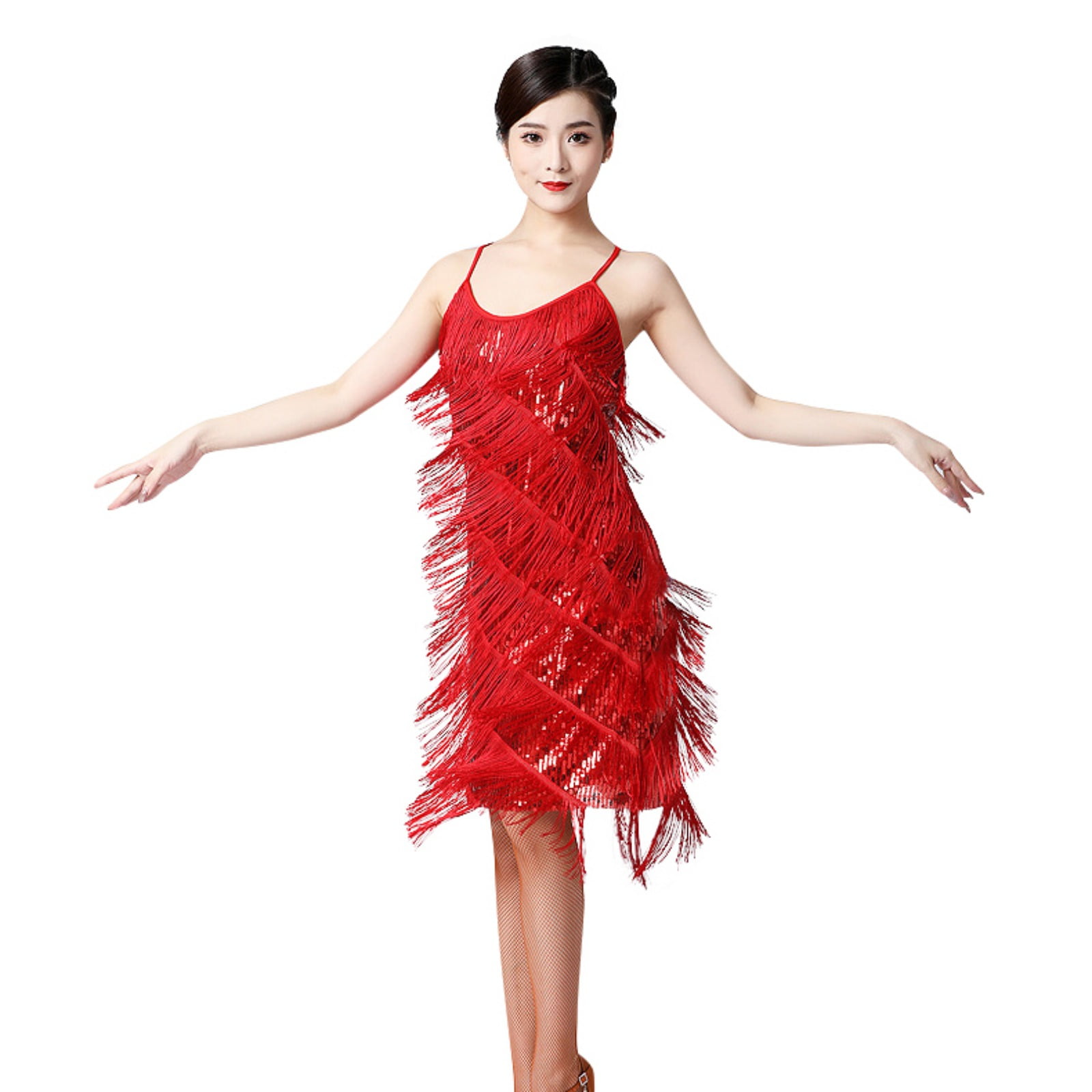 Z&X Damen Salsa Dance Kleid - Glitzer Pailletten Fransen Flapper Partykleid