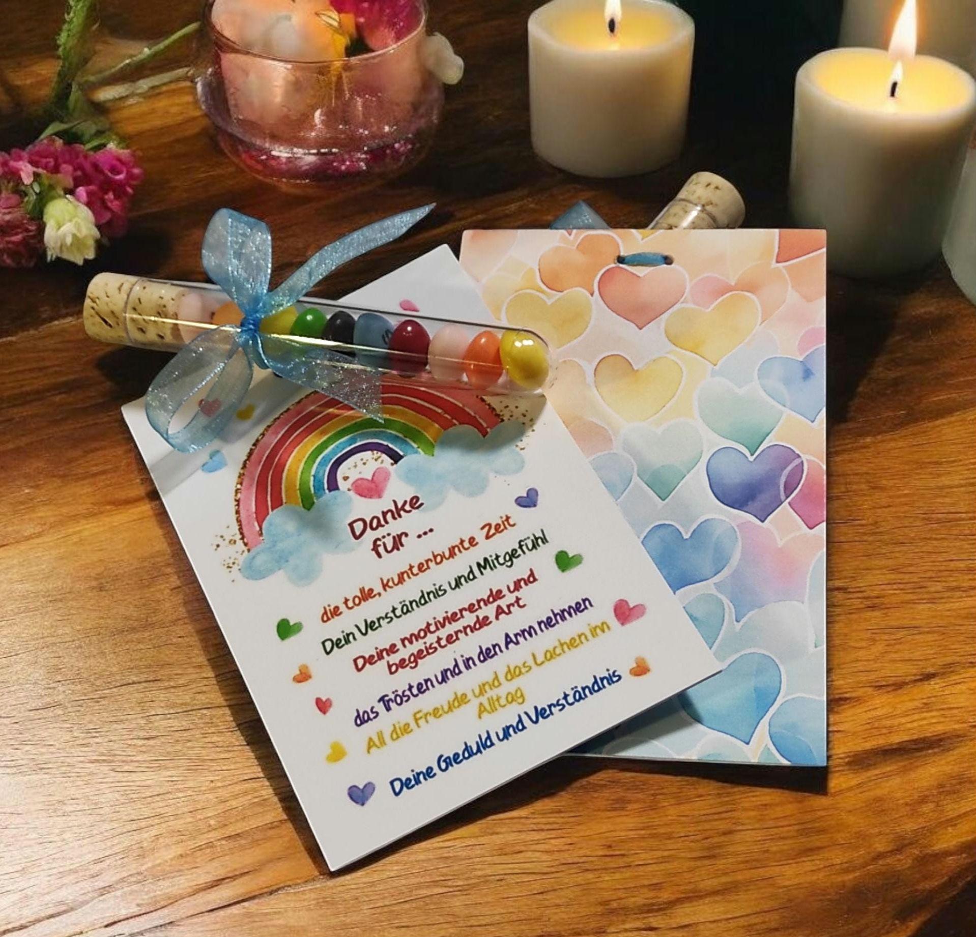 Abschiedsgeschenk Für Erzieher - "Danke Für Die Kunterbunte Zeit" Mit Kerze & Reagenzglas