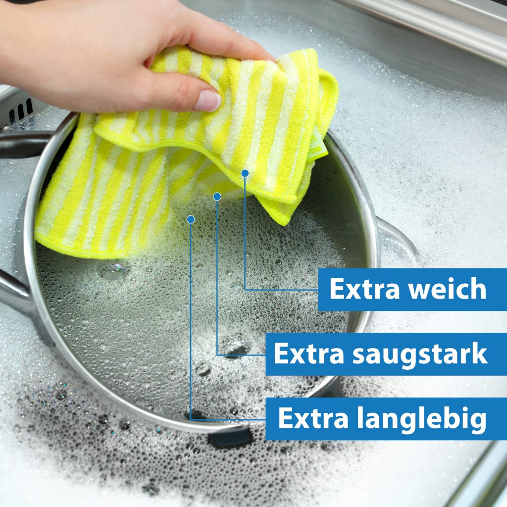Diese EXTRA Premium Spültücher von 'Das blaue Wunder' sind die Alleskönner für deine Küche! Mit hohem Bambusfaser-Anteil saugen sie Flüssigkeiten super schnell auf und fühlen sich dabei kaum nass an. Perfekt zum Abtrocknen von Geschirr, Gläsern, Besteck - aber auch für Fenster, Fliesen oder sogar den empfindlichen Autolack. Die weiche, flauschige Textur liegt angenehm in der Hand und hemmt dabei unangenehme Gerüche. Einfach bei bis zu 95°C waschen (trocknergeeignet!) und sie bleiben auch nach häufigem Waschen saugstark. Mit praktischen 30x30 cm und einer 5-Jahres-Garantie - nachhaltig, hygienisch und extrem langlebig!