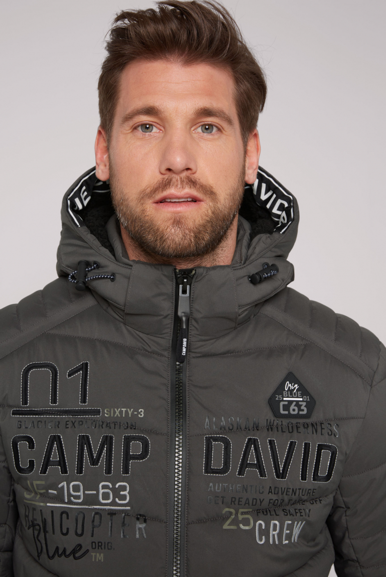 Camp David Herren Winter-Blouson - Materialmix Mit Rücken-Print