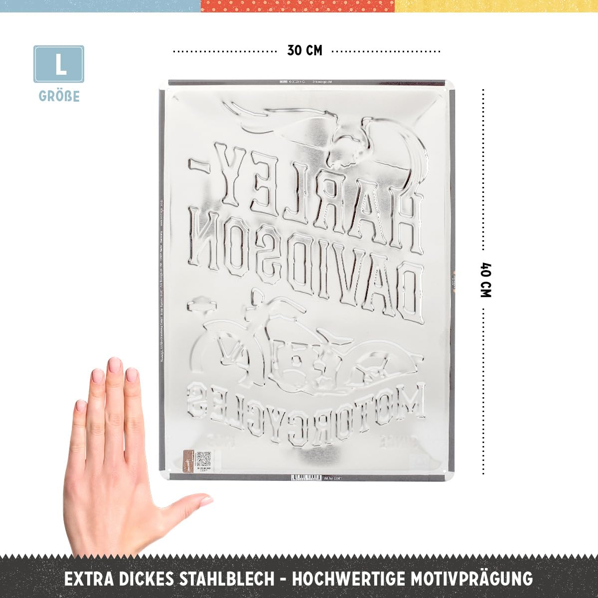 Echte Biker-Herzen schlagen höher! Dieses offizielle Harley-Davidson Blechschild im Retro-Design ist perfekt für Garage, Werkstatt oder Wohnzimmer. Aus extra starkem Stahlblech in Deutschland gefertigt, mit brilliantem Druck und 3D-Motivprägung. Maße: 20x30cm (DIN A4). Die bereits vorgebohrten Löcher machen das Aufhängen zum Kinderspiel. Ein tolles Geschenk für Harley-Fans oder einfach als Deko für alle, die das Besondere lieben. 100% lizenziert - mit echtem Nostalgic-Art Hologramm auf der Rückseite!