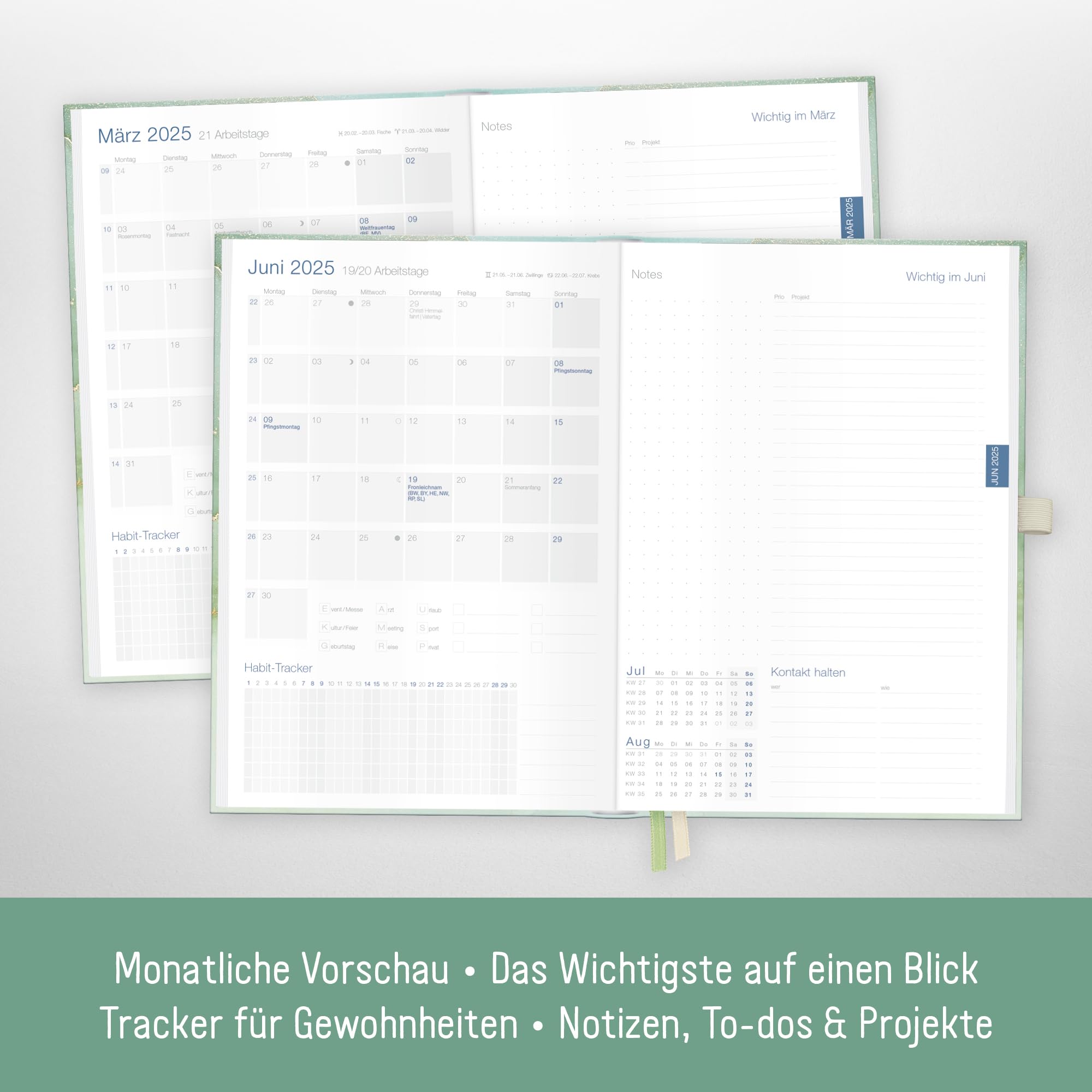Chaos im Alltag? Der Häfft Organizer Day by Day 2025 bringt Ordnung in dein Leben! Im praktischen A5-Format mit edler Korkoptik findest du für jeden Tag eine ganze Seite Platz für Termine, Aufgaben und spontane Einfälle. So behältst du immer den Überblick und reduzierst Stress. Neben den Tages-Seiten gibt's natürlich auch Monatsübersichten für die langfristige Planung. Das Beste: Häfft denkt an die Umwelt - nur umweltfreundliches Papier und klimafreundlicher Druck! Ob für die Arbeit, Studium oder privat - dieser Kalender wird dein treuster Begleiter durchs Jahr 2025. Nie wieder wichtige Termine vergessen, immer alle To-dos im Blick. Mit dem Häfft machst du nicht nur dein Leben organisiert, sondern tust auch noch was Gutes für unseren Planeten. Perfekt für alle, die ihr Leben besser strukturieren wollen - ohne Papierkrieg und umweltfreundlich obendrauf!