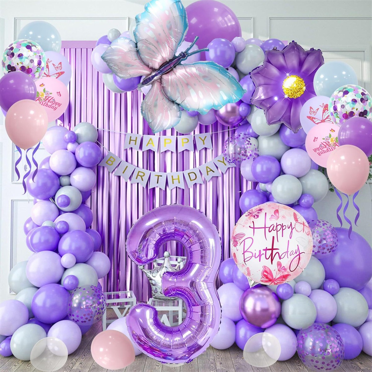DazzJoy Schmetterling Ballons 3. Geburtstag - Rosa Luftballon Deko Für Mädchen