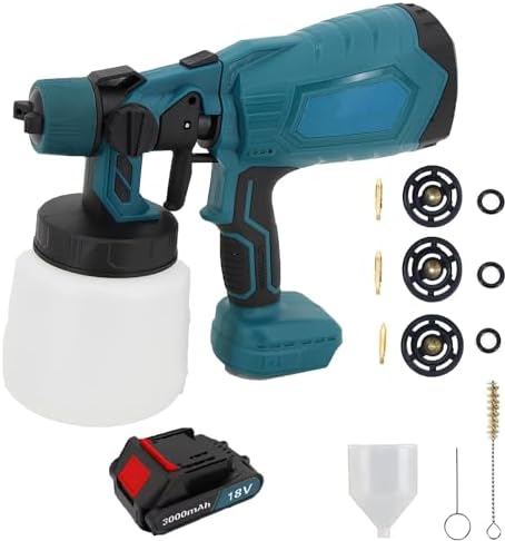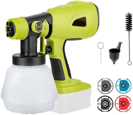 Boah, malern war noch nie so einfach! Diese kabellose Farbspritzpistole von Kilison ist ein absoluter Game-Changer für alle Heimwerker. Kompatibel mit deinem DeWalt 18V oder 20V Akku - einfach Akku rein und los geht's!\n\nIm Lieferumfang ist echt alles dabei: 4 verschiedene Kupferdüsen (1.0, 1.8, 2.5 und 3.0 mm), 1000ml Behälter, Schutzbrille, Handschuhe und sogar Reinigungszubehör. Nur den Akku musst du separat haben - aber den hast du ja sicher schon.\n\nDas Teil hat 200 Watt Power und wiegt nur 1,31 kg - also super handlich. Du kannst zwischen 3 Sprühvarianten wählen: horizontal, vertikal oder rund. Perfekt für Möbel, Zäune, Wände - einfach alles was Farbe vertragen kann.\n\nDer Durchflussregler lässt sich stufenlos einstellen, sodass du genau kontrollieren kannst, wie viel Farbe aufsprüht. Wichtig: Die Farbe vorher gut verdünnen (am besten 3:1 Verhältnis) und auf Pappe testen.\n\nNach dem Gebrauch sofort reinigen, sonst verstopfen die Düsen. Aber keine Sorge - mit der beiliegenden Reinigungsnadel ist das kein Problem. Ob für drinnen oder draußen, ob Profi oder DIY-Anfänger - mit dieser Spritzpistole machst du nichts verkehrt. Einfach Akku drauf und ab geht die Post!