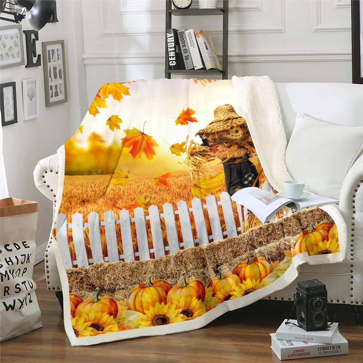 Herbst Decke 75x100cm - Sherpa Fleece Decke Mit Herbstmotiven Für Couch & Outdoor