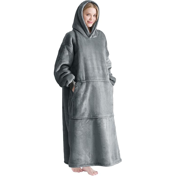 Ultimative Gemütlichkeit mit diesem Decke-Hoodie! Stell dir vor: Ein übergroßes Sweatshirt, das gleichzeitig eine kuschelige Decke ist! Auf der einen Seite superweiches Mikrofaser-Fleece, auf der anderen Seite samtiges Sherpa-Futter - du entscheidest, welche Seite dir besser gefällt. Mit zwei riesigen Taschen für Handy, Tablet, Snacks oder Fernbedienung. Die großen Ärmel, übergroße Kapuze und elastischen Bündchen geben dir totale Bewegungsfreiheit. Perfekt zum Entspannen zu Hause, Fernsehen, Lesen oder für Camping-Ausflüge. Aus Lammwolle und Flanell, 1000 Gramm schwer - richtig kuschelig und warm! Einheitsgröße passt für alle Erwachsene, Damen, Herren und Kinder. Einfach in der Maschine waschen (kalt) und bei niedriger Temperatur trocknen. Das perfekte Geschenk für kalte Tage!