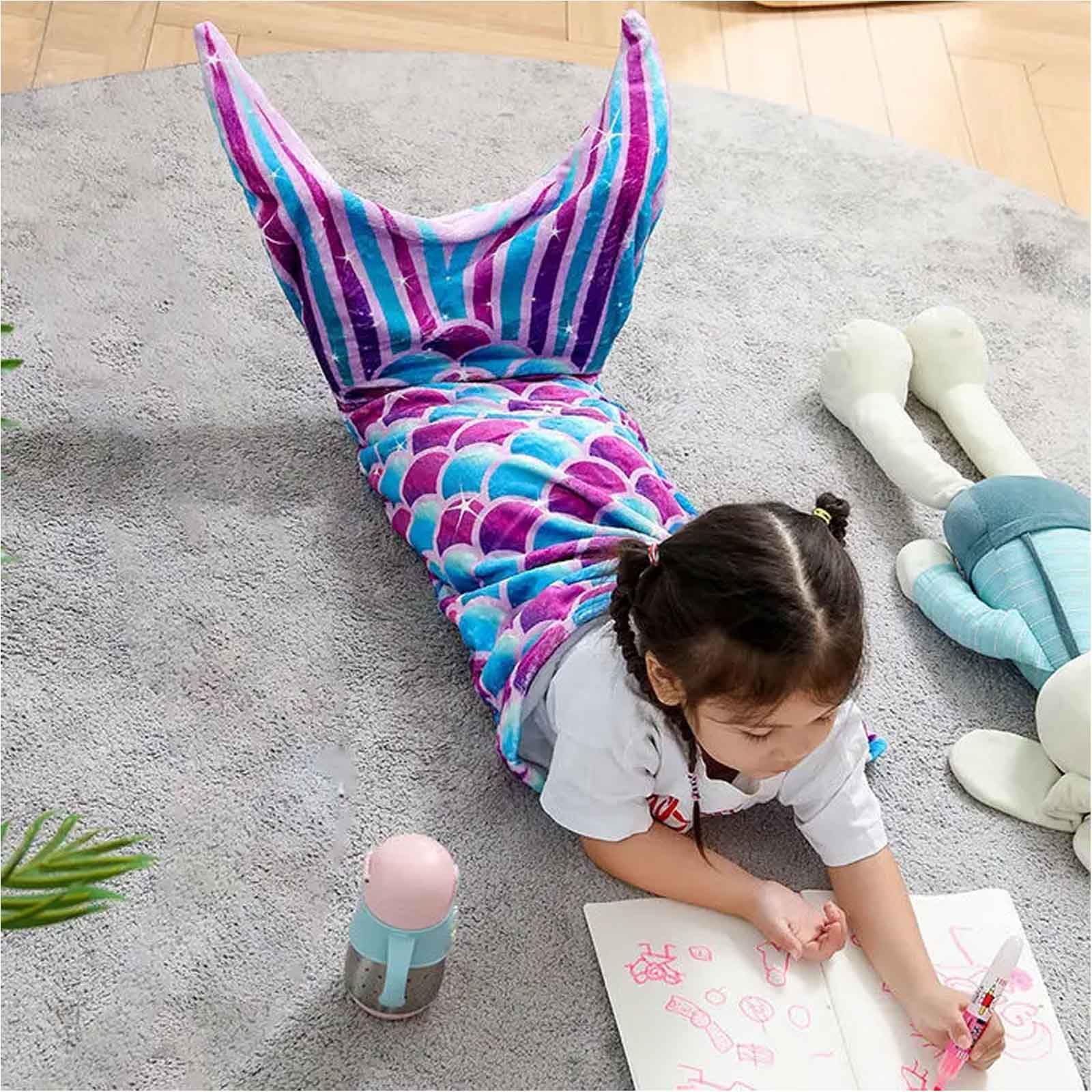 SSKHE Meerjungfrau Decke Mit Socken - Flanell Schlafsack 130x50cm Lila/blau