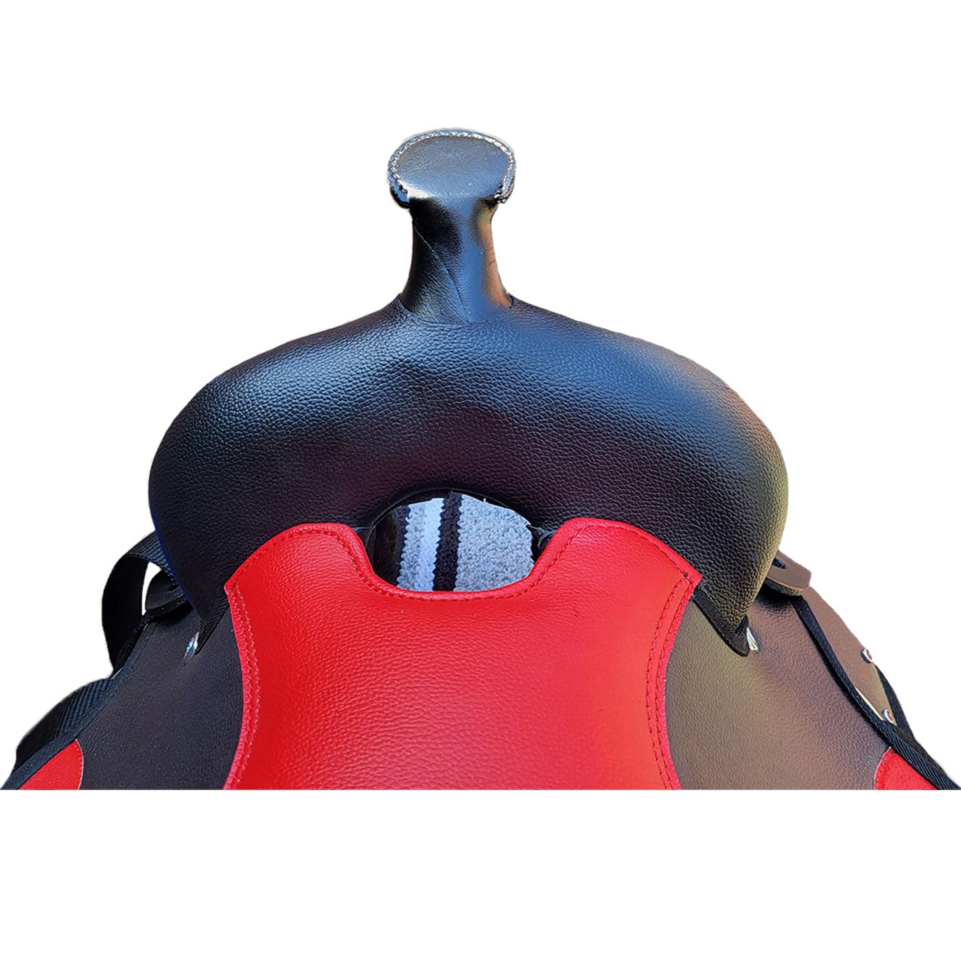 Für alle kleinen Cowboys und Cowgirls! Dieser Westernsattel bringt echtes Ranch-Feeling ins Kinderzimmer. Aus robustem Kunstleder gefertigt, ist er super leicht - perfekt für kleine Kinderhände. Mit funkelnden Strasssteinen in rot und schwarzer Farbe sieht er einfach mega cool aus! Die Unterseite ist mit weichem Kunststofffell gepolstert, damit er angenehm aufliegt und weder Pony noch Holzpferd drückt. Der stabile Haltegriff gibt den Kleinen zusätzlichen Halt und Sicherheit. Im Set ist sogar eine passende Western-Decke in schwarz/grau dabei - damit wird das Spiel komplett. Die Kunststoff-Steigbügel sind leicht und stabil, perfekt für Kinderfüße. Ob für's Holzpferd im Zimmer oder für's echte Pony - dieser Sattel macht immer ne gute Figur. Fördert die Fantasie und macht einfach riesig Spaß! Einfach auflegen, festzurren und ab geht's ins Abenteuer. Perfektes Geschenk für kleine Reitfans!