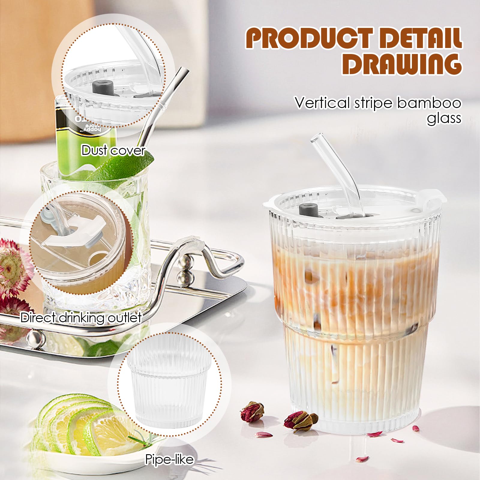 Wow, diese Glasbecher sind einfach nur stylisch! Mit ihrem gerippten Design sehen sie nicht nur super aus, sondern sind auch noch mega-praktisch. Jeder Becher hat 380ml Fassungsvermögen und kommt mit passendem Deckel und Strohhalm - perfekt für unterwegs oder einfach nur für den gemütlichen Sofa-Abend. Aus dickem, robustem Glas gefertigt sind sie viel umweltfreundlicher als Plastikbecher und halten auch heiße Getränke aus (obwohl sie besonders für kalte Getränke geeignet sind). Die weite Öffnung macht das Reinigen super einfach - einfach in die Spülmaschine oder per Hand spülen. Im Lieferumfang sind 4 Gläser, 4 Deckel, 4 Strohhalme und sogar 2 Reinigungsbürsten enthalten. Egal ob du dir einen cremigen Smoothie, erfrischenden Eistee oder einen leckeren Cocktail mixen willst - mit diesen Bechern schmeckt's gleich doppelt so gut!