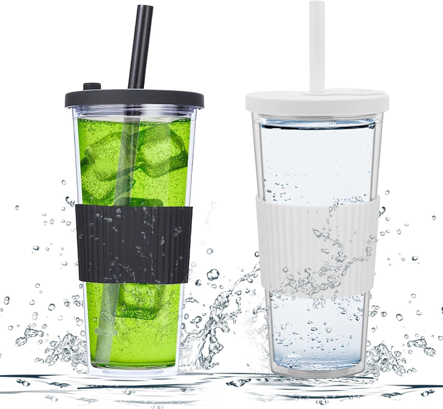 30x Trinkbecher 450ml Mit Deckel & Strohhalm - Wiederverwendbare Partybecher