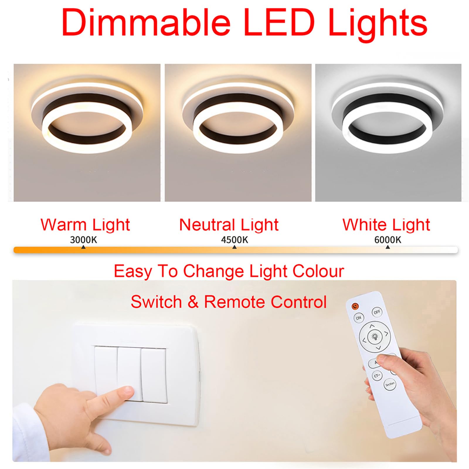 LED Deckenleuchte Dimmbar 40cm - Moderne Deckenlampe Mit Fernbedienung 2700K-6500K