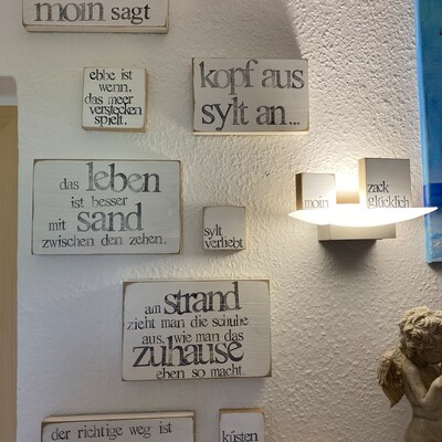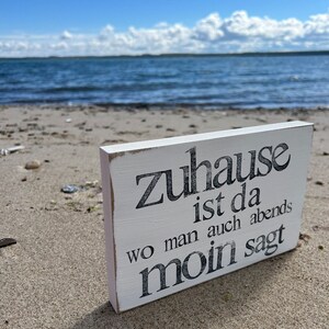Dieses coole Küstenschild mit dem Spruch 'Zuhause ist, wo man abends Moin sagt' bringt norddeutschen Charme in deine vier Wände! Das maritime Design mit Leuchttürmen, Möwen und Muscheln sorgt für Urlaubsfeeling daheim. Aus Aluminium mit rustikaler Holzbretter-Optik - wasserdicht und super stabil. Perfekt für Flur, Bad, Ferienhaus oder Küche. Ein tolles Geschenk für alle Nordsee-Fans und Küstenliebhaber. Mit diesem Schild holst du dir das besondere Flair der Küste nach Hause - einfach aufhängen und jeden Abend 'Moin' sagen!