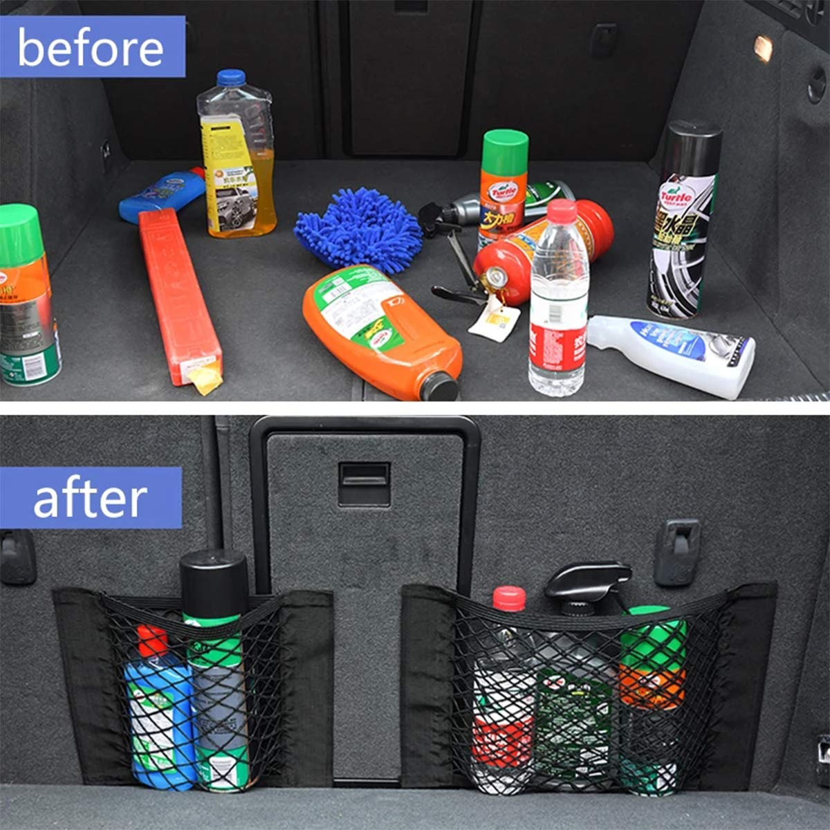 Deemars 2er Set Auto-Ladenetze - Elastische Kofferraum-Organizer Mit Klettverschluss