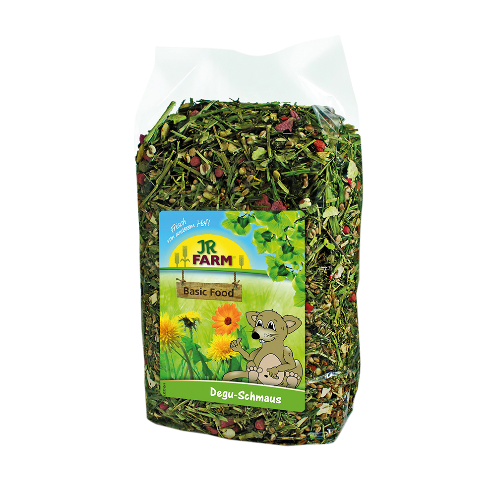 Das beste für deine Degus! Dieses JR Farm Degu-Spezial im praktischen Doppelpack (2x500g) ist ein vollwertiges Alleinfutter mit allem, was deine kleinen Nager brauchen. Enthält wertvolle Kräuter wie Pfefferminze, Spitzwegerich und Petersilie sowie proteinreiche Erbsenflocken und ballaststoffreiches Bergwiesenheu. Mit Vitamin A, D3 und E für starke Abwehrkräfte. Einfach täglich so viel füttern, wie innerhalb von 24 Stunden gefressen wird. Deine Degus werden es lieben - und du tust ihnen was Gutes!