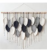 EXQUILEG Makramee Wandbehang Boho Deko - 150cm Blätter Design Mit Fransen | Khaki