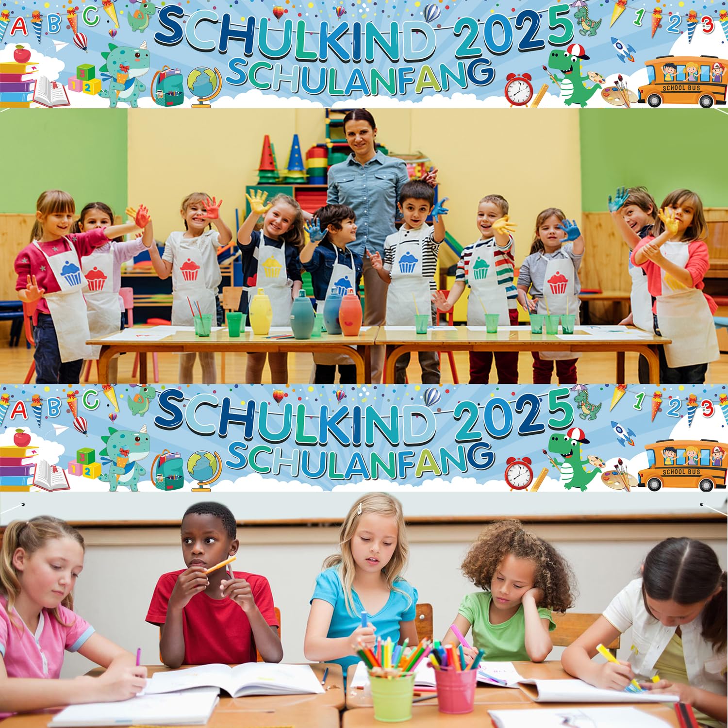 Der erste Schultag ist etwas Besonderes - mach ihn mit dieser personalisierten Einschulungsdekoration unvergesslich! Das originelle Design kombiniert Girlande mit Fotos und hält so die wichtigsten Momente fest. Aus verdickter, robuster Pappe gefertigt, hält die Deko auch nach der Feier noch lange. Im Lieferumfang: 1 komplettes Banner, 5 Meter Schnur, Plastiknadel zum Durchfädeln und doppelseitige Klebepunkte. Perfekt für 6-Zoll-Fotos geeignet. Ob im Wohnzimmer, Kinderzimmer oder als Partydekoration - dieses Banner sorgt für strahlende Kinderaugen. Ideal als Geschenk von Eltern, Großeltern oder Freunden. Ein persönliches Andenken, das die Erinnerung an den großen Tag lebendig hält. Einfach die Fotos einfügen, aufhängen und die Freude genießen!