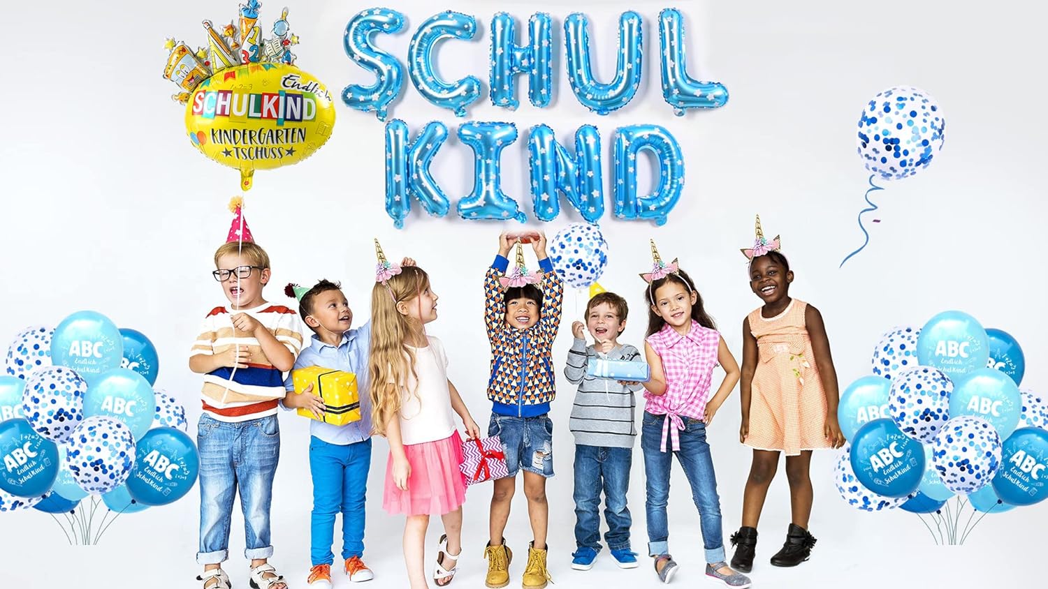 Dieses Gleemix Einschulung Deko Set macht die Einschulung zu einem unvergesslichen Ereignis! Im Set sind 13 Teile enthalten: 8 goldene Folienballons mit den Buchstaben 'SCHUKKIND', 5 glitzernde Latexballons (12 Zoll), 5 weitere goldene Latexballons und 2 große Stern-Folienballons (18 Zoll). Dazu gibt es ein 10 Meter langes Band und einen Strohhalm zum Aufblasen. Aus hochwertigem Folien- und Latexmaterial sind die Ballons langlebig und können nach der Feier entleert und wiederverwendet werden. Einfach mit Handpumpe oder Strohhalm aufblasen (nur zu 80-90% füllen!) und mit dem Band aufhängen. Perfekt für die Schulstartfeier, Klassenzimmerdekoration oder Willkommensfeiern. Einfach aufhängen und sich an der goldenen Feststimmung erfreuen - die Kleinen werden begeistert sein!