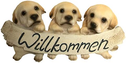 OF Gartenfiguren Willkommen-Schild - Wetterfeste Deko Mit Katzen, Hunden & Erdmännchen Für Eingangsbereich